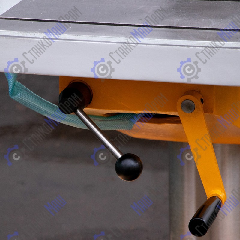 Станок B-1832G/400 оснащён функциями поворота и подъёма стола, имеющего 2 т-образных паза для крепления приспособлений и деталей, что обеспечивает удобство работы и расширяет возможности станка.