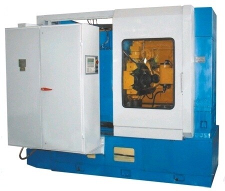 Полуавтоматы выполнены в компоновке с вертикальной осью изделия, подвижной передней стойкой и неподвижным столом. Осевая подача осуществляется перемещением салазок суппорта по вертикальным направляющим передней стойки. Регулирование частоты вращения шпинделя фрезы, а также величин осевой и радиальной подачи производится бесступенчато асинхронными двигателями или серводвигателями (в зависимости от исполнения), управляемыми от частотных преобразователей. Характерными особенностями полуавтоматов являются высокая статическая и динамическая жесткость за счет рациональной формы направляющих стойки и каретки суппорта, увеличения жесткости основных формоопределяющих узлов.